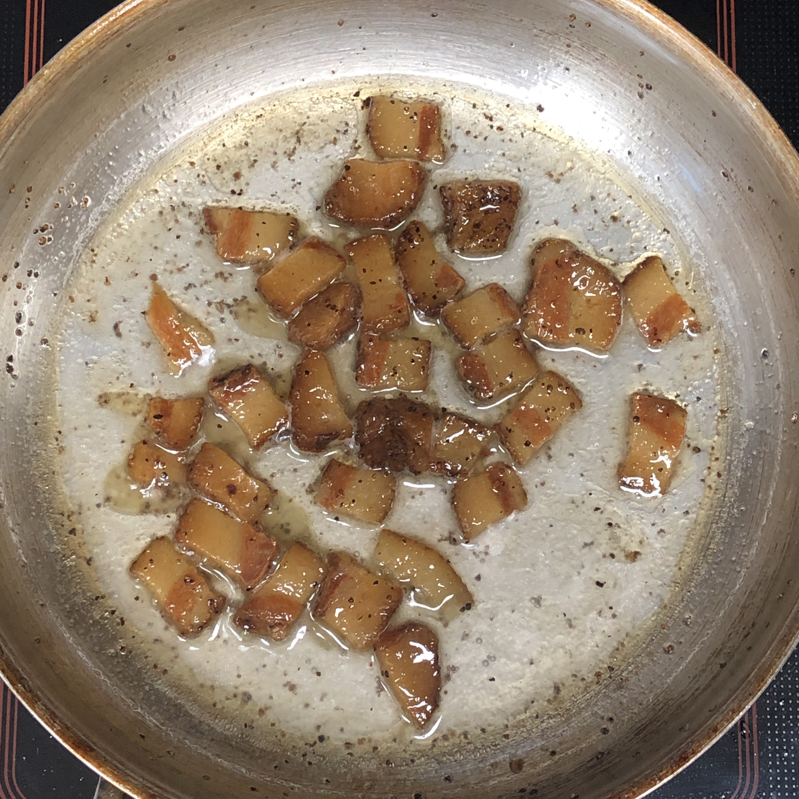 2. 관찰레(베이컨)을 약불에서 익혀준다.